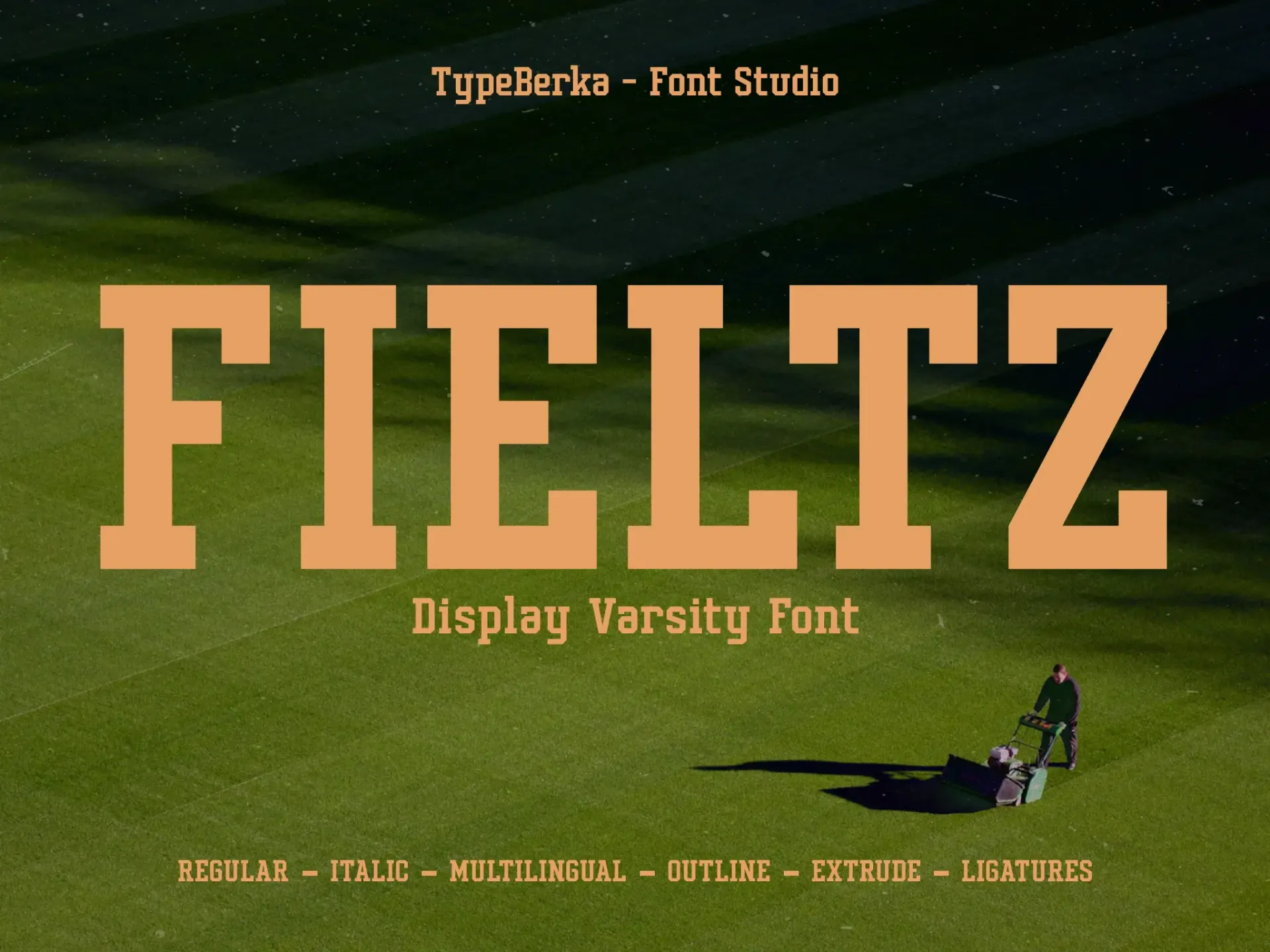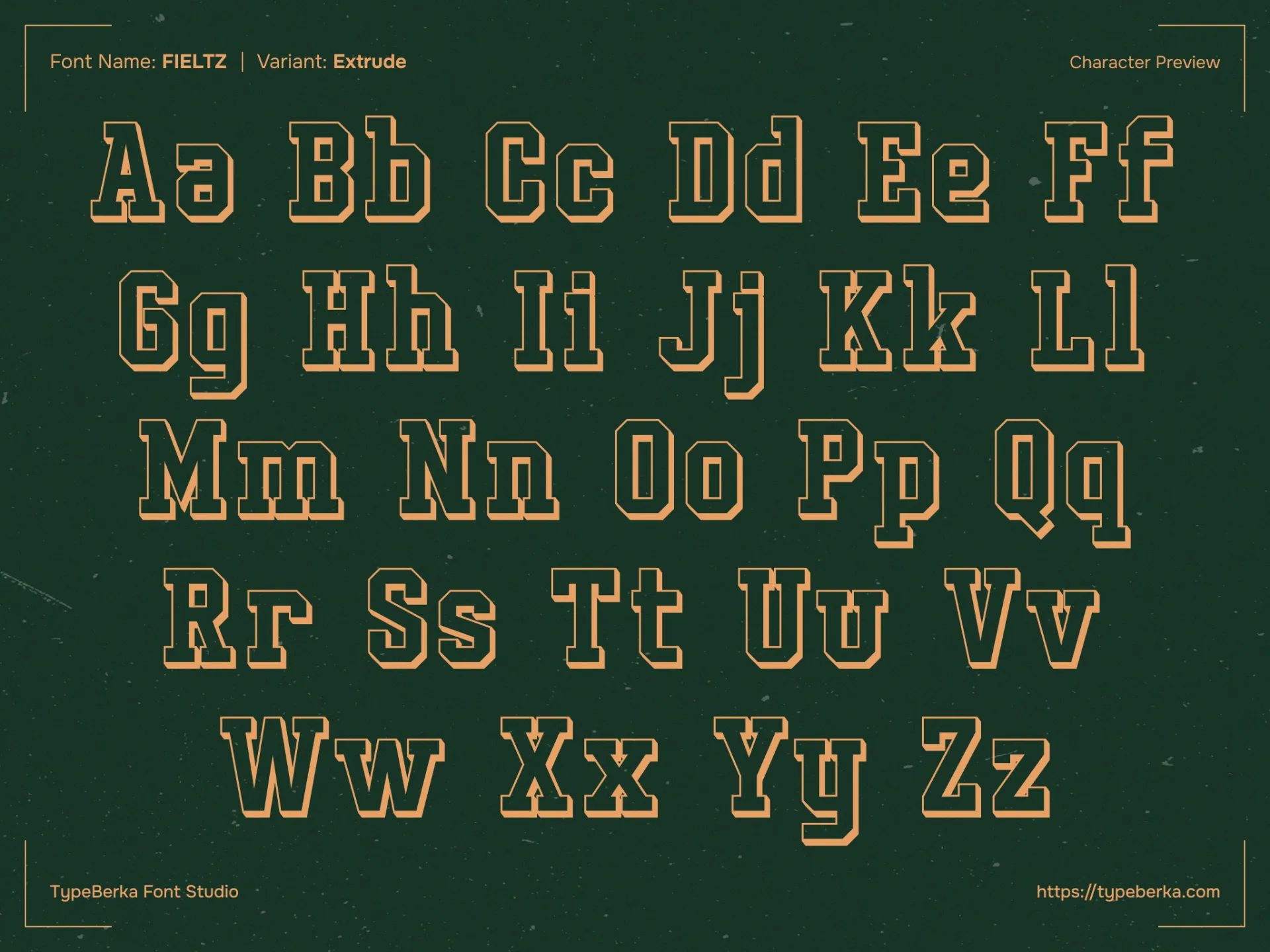 Fieltz is a versatile varsity display font built with a strong slab-serif foundation and athletic proportions. It provides a complete typographic system including extrude and outline variants to ensure maximum legibility across sports media and team branding.