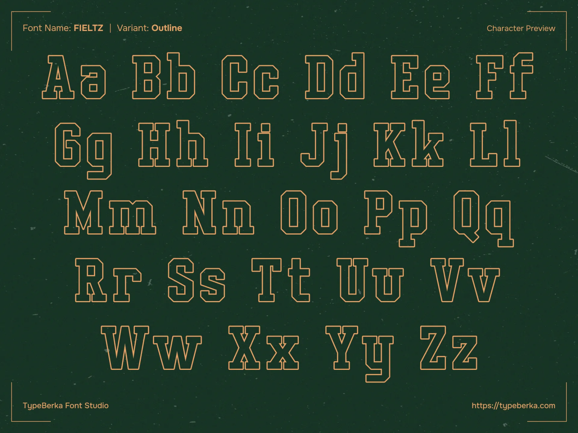 Fieltz uses a rigid geometric structure that defines the classic collegiate look. The design features heavy slab serifs and consistent stroke weights. As a result, the typeface projects strength and visual stability.