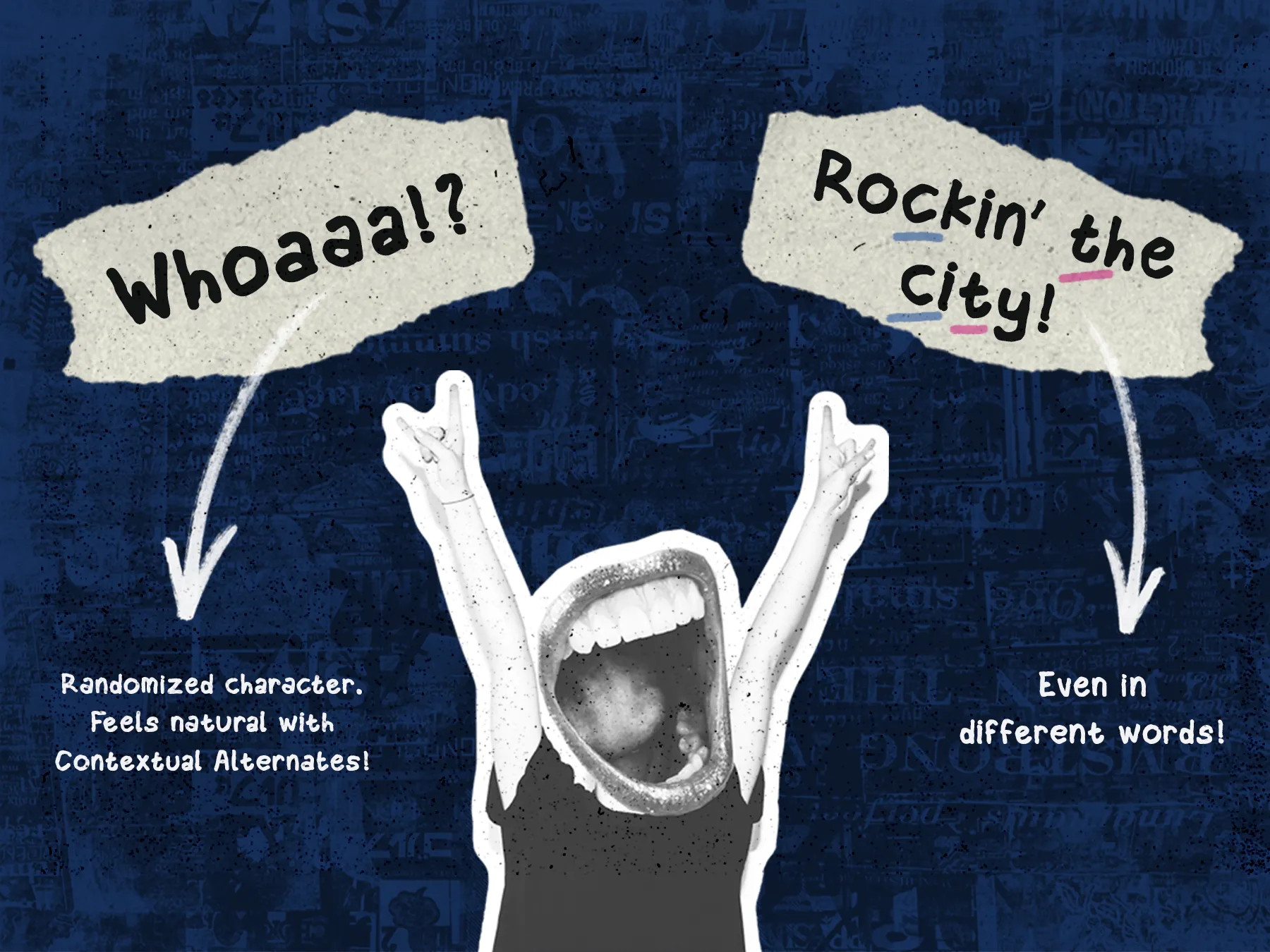 Its expressive alternates and emoticon ligatures make Joy Elia especially popular for designs that rely on emotion, storytelling, and human connection.