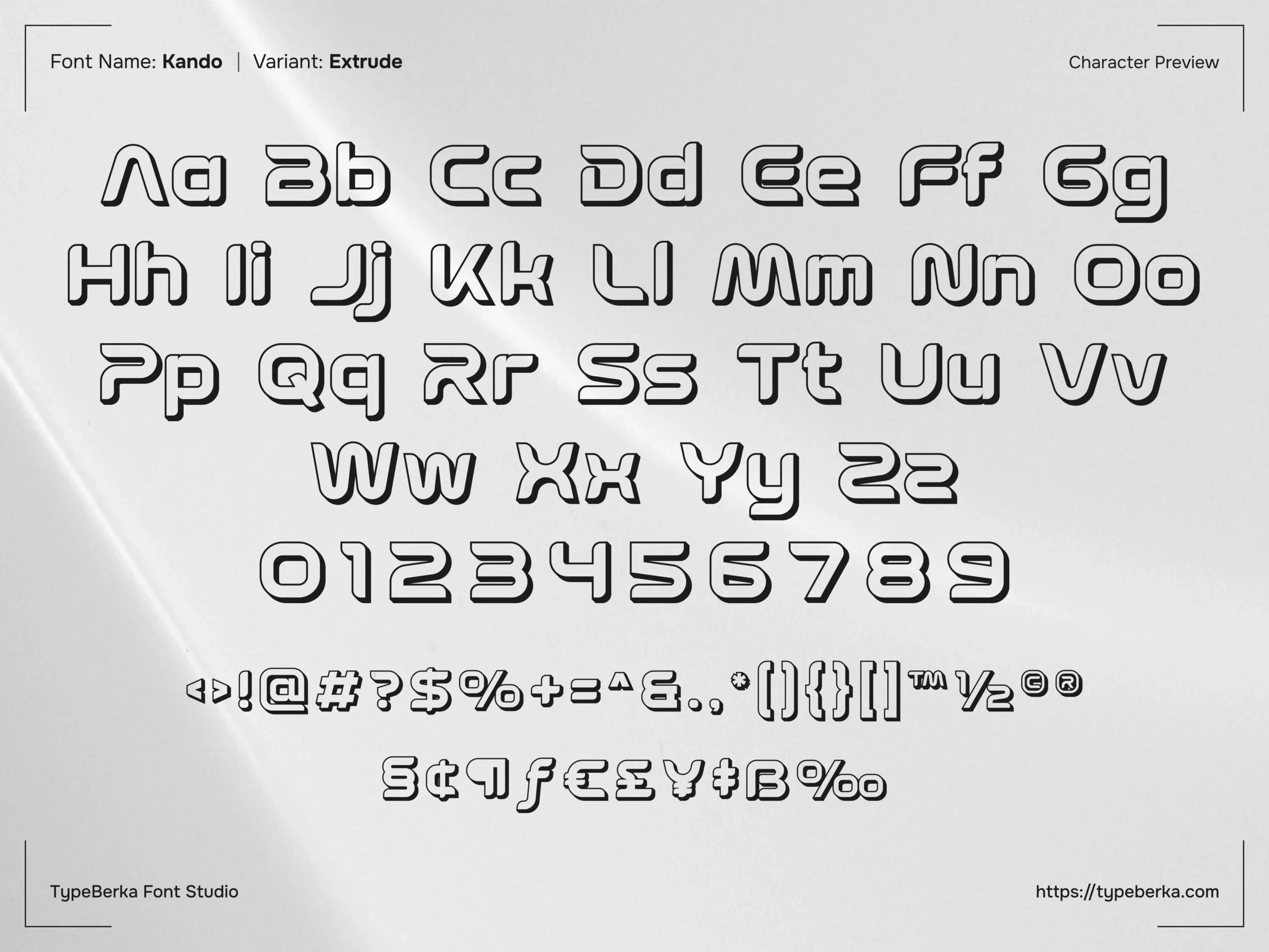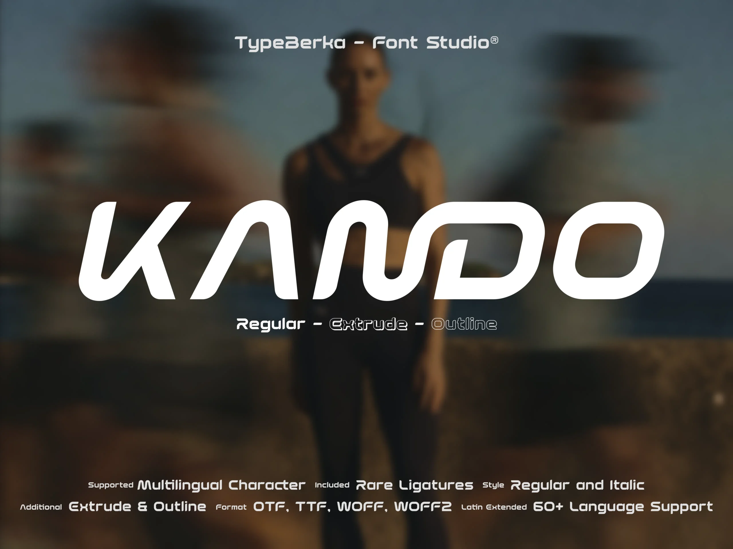 Use Kando for display typography where clarity and identity need to work together. It fits logotypes, esports-style naming systems, event headers, packaging titles, and motion graphics where smooth transitions help maintain legibility. The Outline and Extrude variants support layered treatments, shadow builds, and dimensional lockups without needing heavy effects.