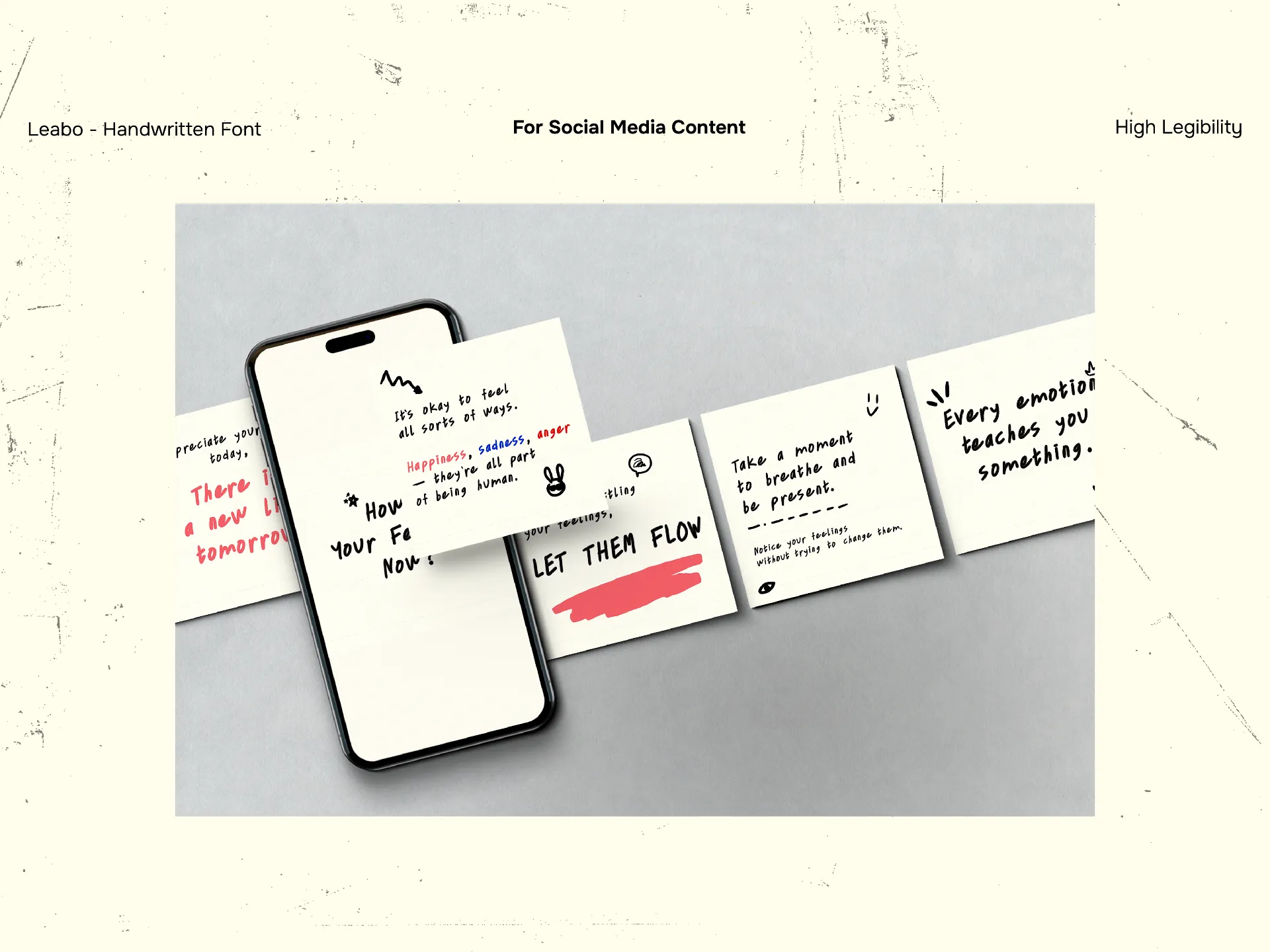 Leabo is a versatile handwritten font designed to feel natural, warm, and highly readable. Unlike rough or overly expressive handwriting fonts, Leabo strikes the perfect balance between personality and clarity—making it ideal for both display text and short paragraphs.