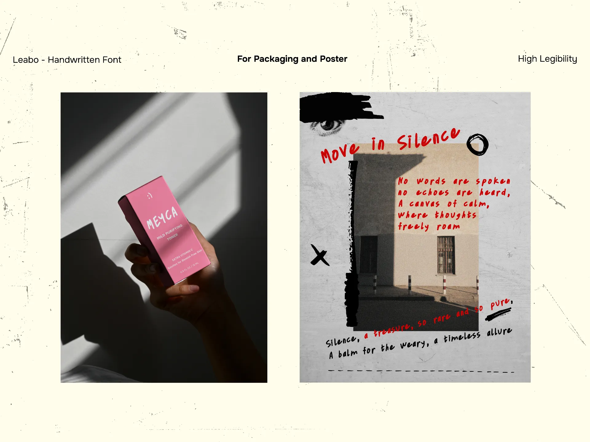 If you’re looking for a handwritten font that is clean, modern, and easy to read, Leabo is a reliable choice trusted by designers across branding, packaging, and editorial design.
